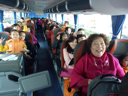 坐在幼儿园统一安排的大巴车里,孩子们都很兴奋,欣赏着沿途的风景,期待着快一点到达目的地。