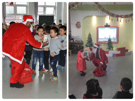 圣诞老人也来到了活动的现场,为每一个孩子送上了圣诞礼物,并用英文向孩子送上了圣诞祝福!